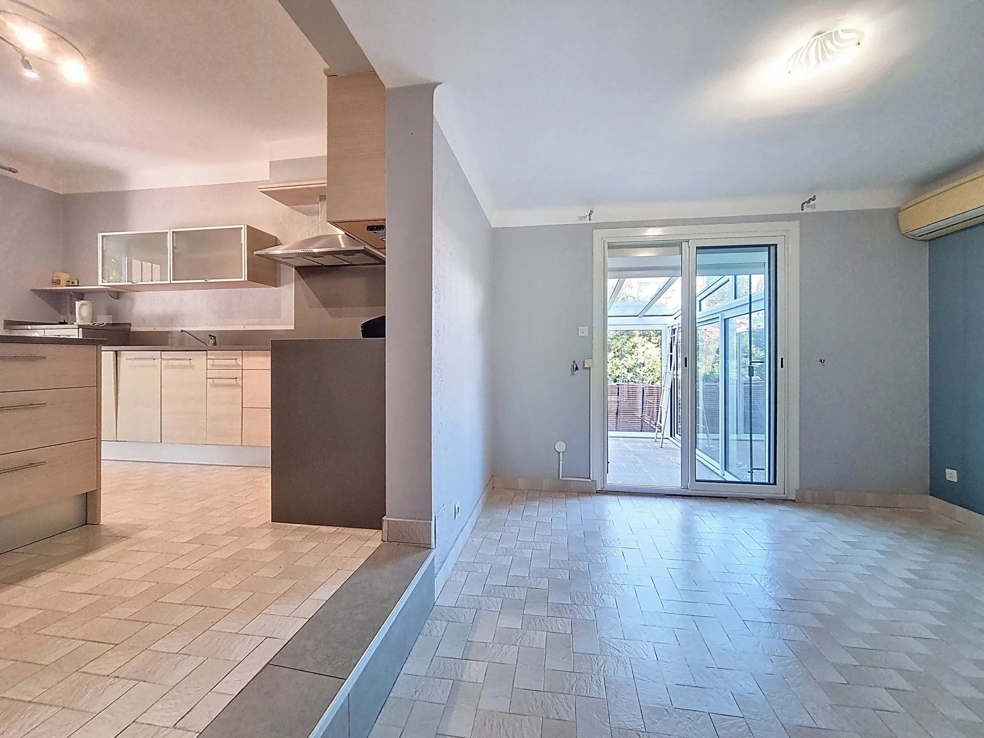 Belle maison 3 faces composée en RDC d'un beau salon, une salle à manger avec véranda donnant sur une cuisine ouverte, une salle d'eau et un WC séparé.