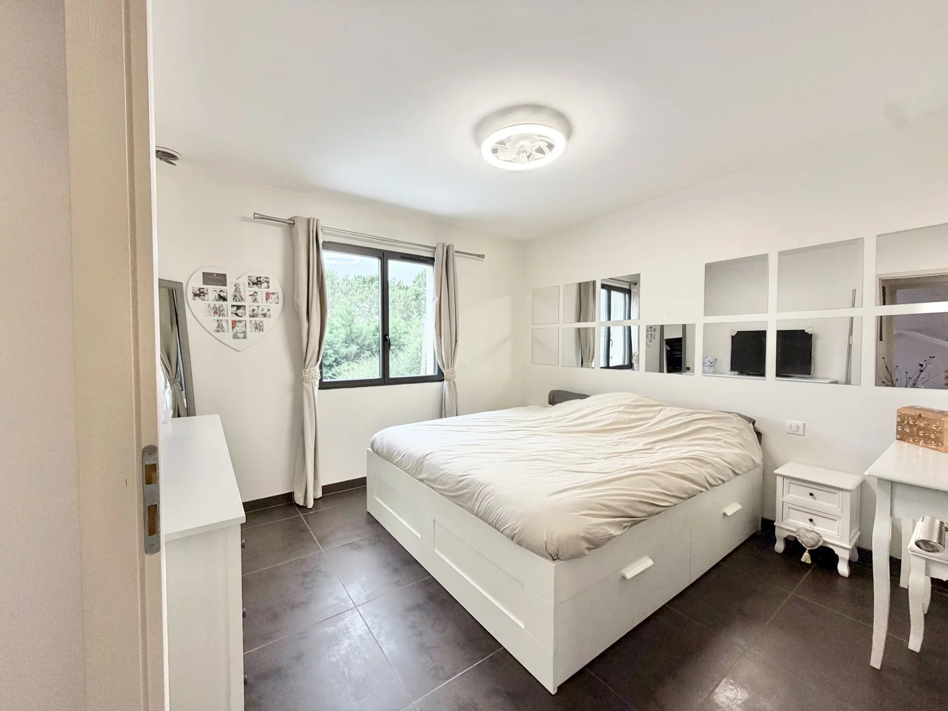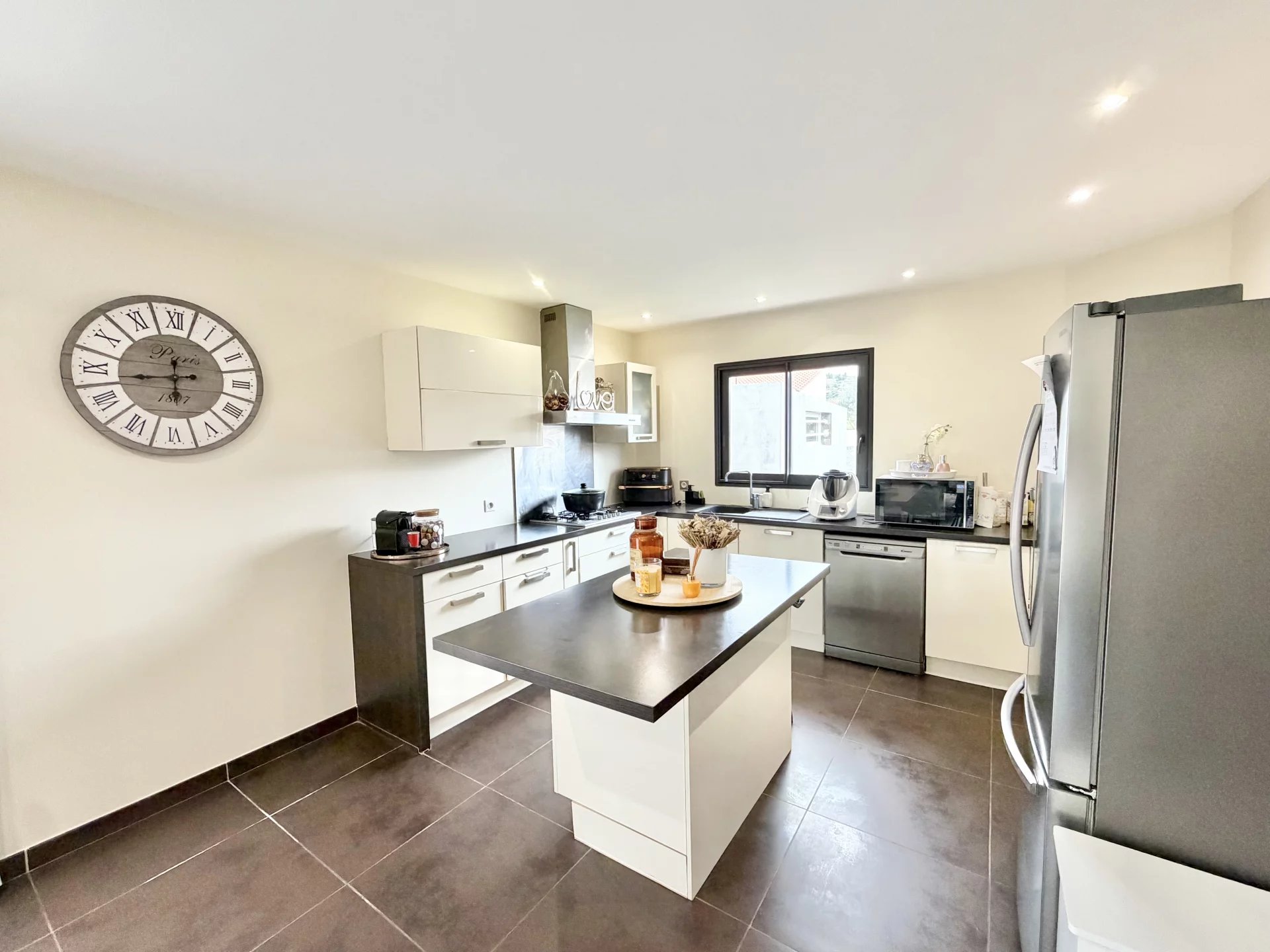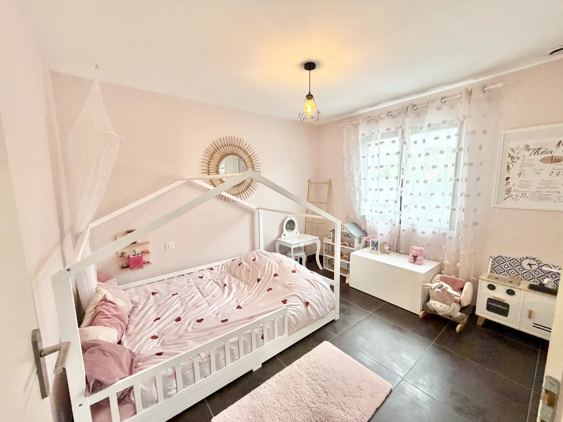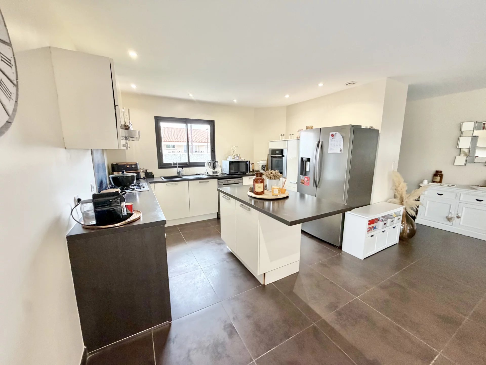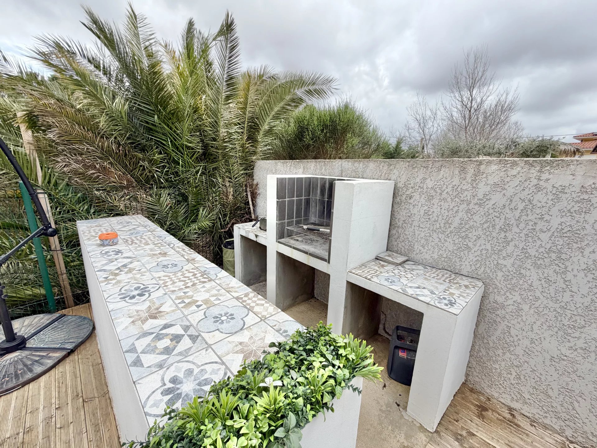 Vous bénéficiez de belles prestations : climatisation gainable, double vitrage, cuisine équipée, nombreux placards, jardin aménagé avec coin barbecue en dur, piscine sécurisée avec rideau et un abris jardin en dur. Jardin avec peu d’entretien.