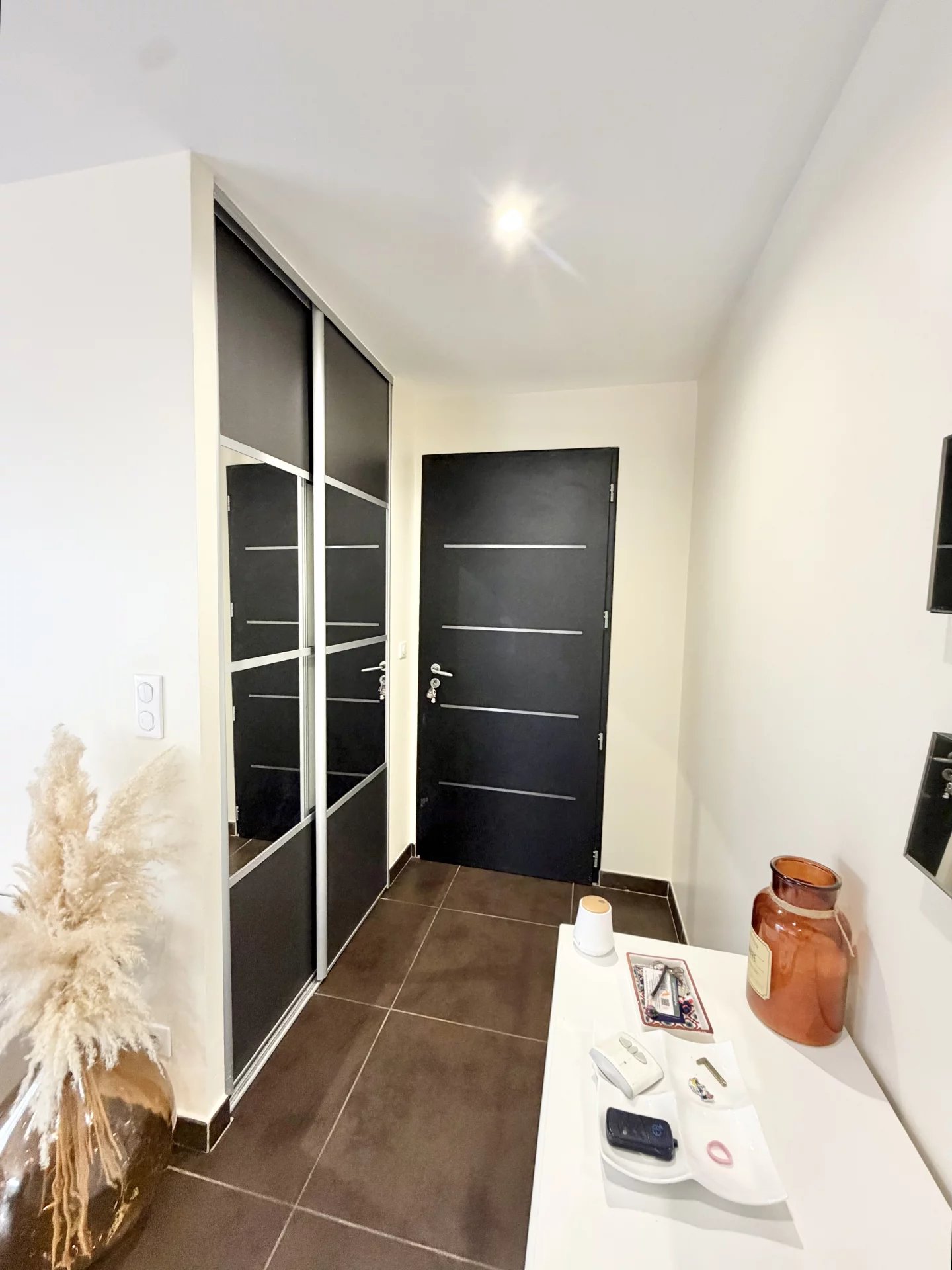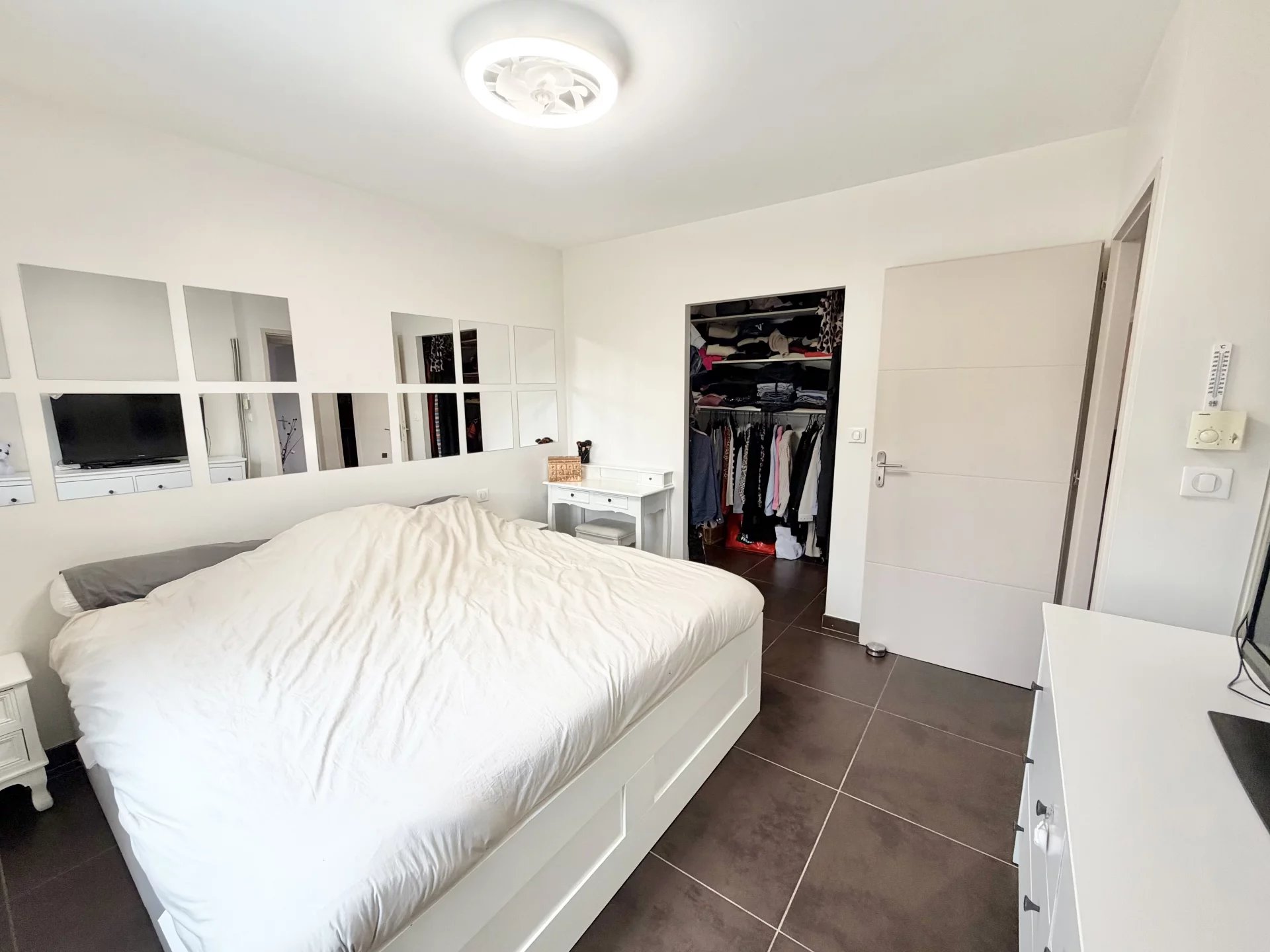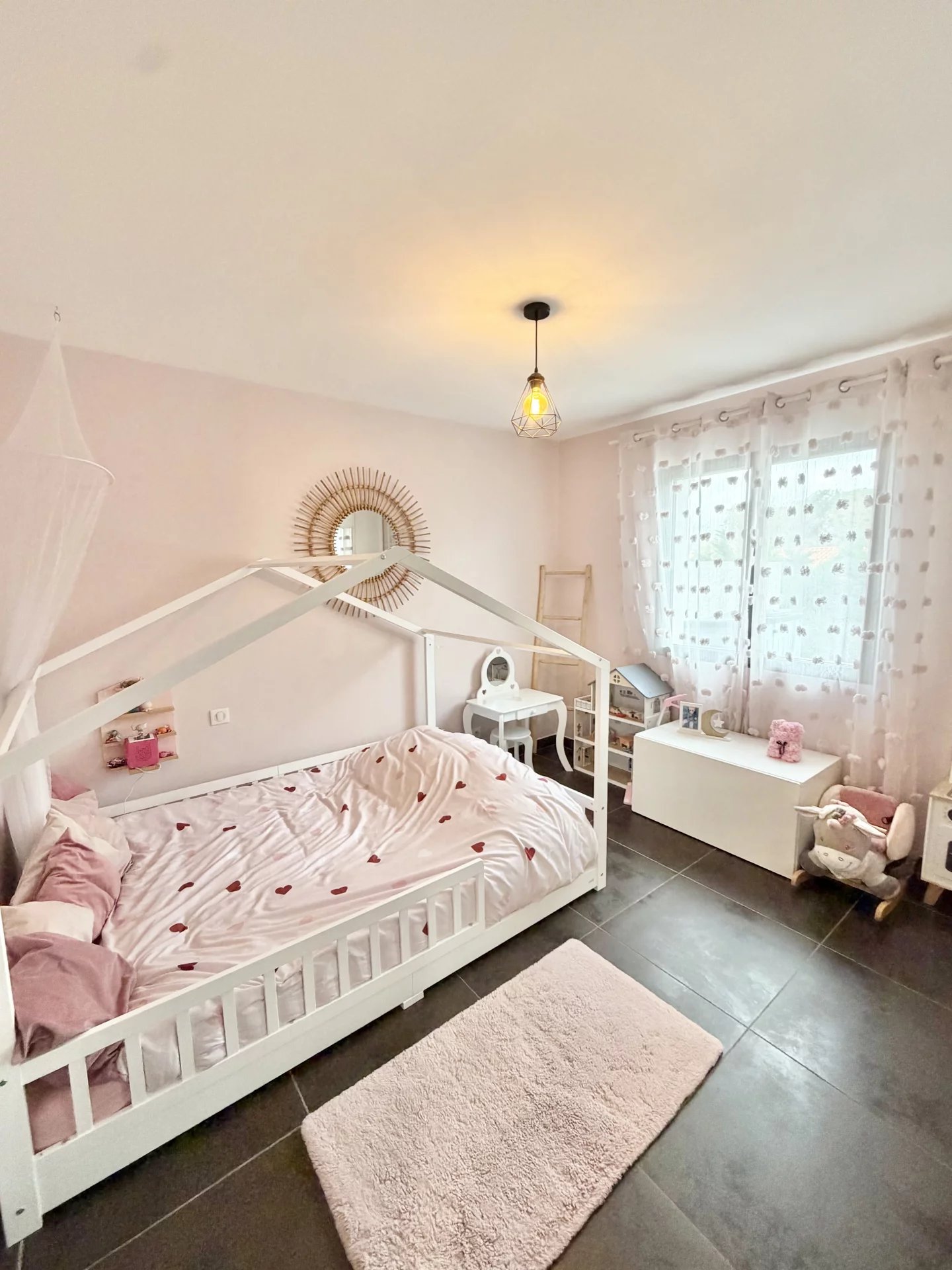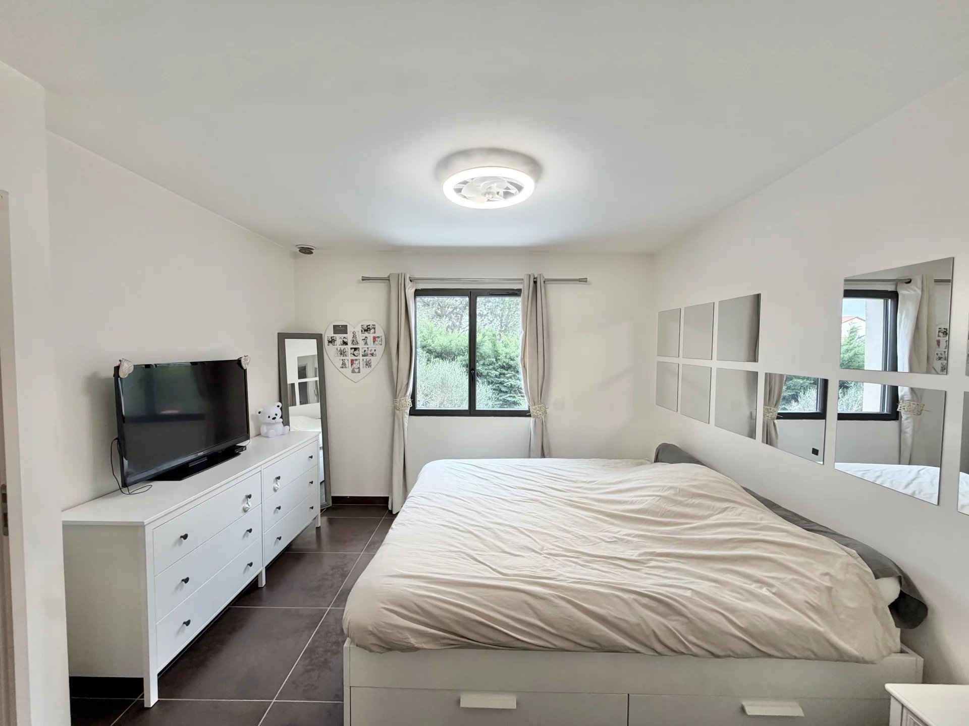 Vous bénéficiez de belles prestations : climatisation gainable, double vitrage, cuisine équipée, nombreux placards, jardin aménagé avec coin barbecue en dur, piscine sécurisée avec rideau et un abris jardin en dur. Jardin avec peu d’entretien.